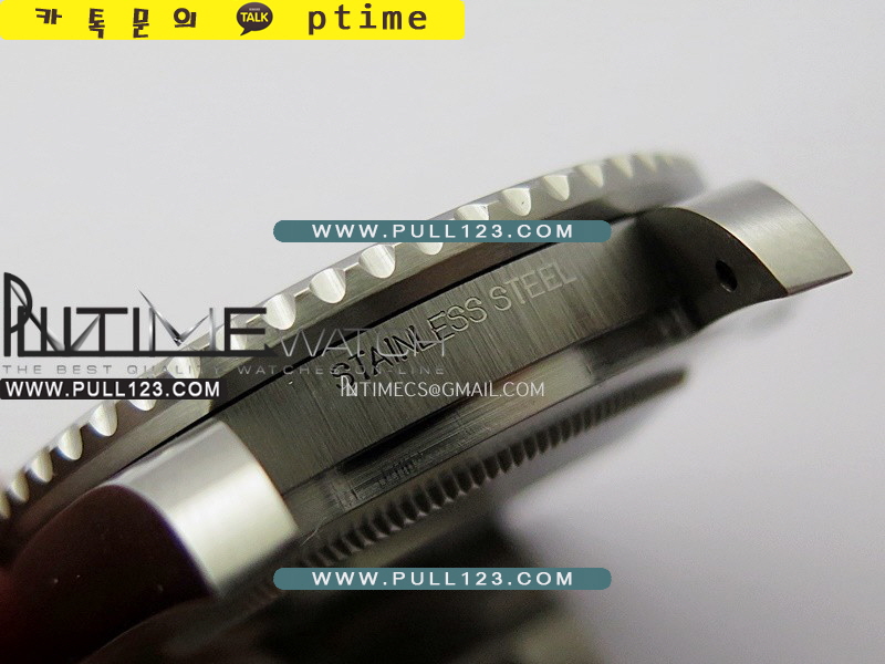 2. 정품과 동일한 투명도의 사파이어 크리스탈을 사용 했습니다. 3. 사이클롭스 배율이 정확하며, 조명 반사광 역시 정품과 동일합니다. 4. 베젤의 톱니 홈 역시 정품과 일치합니다. 5. 크라운을 완전히 잠근 후 0.25mm의 유격이 있으므로 케이스와의 마찰이 없습니다. (시중 제품은 끝까지 잠기므로 크라운과 케이스가 마찰되어 크라운기스 납니다) 6. 분침은 상당히 날카롭고, 초침은 매끄럽고 선명하며, GMT 침은 정품과 동일한 빨간색을 사용 했습니다. |